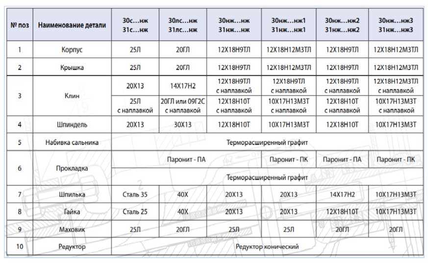 Как видно из приведенной таблицы (рис. 3), для производства деталей используют литейные (литера Л в конце обозначения) 20Л, 25Л и конструкционные стали (09Г2С), нержавеющие высоколегированные сплавы для отливок (12Х18Н9ТЛ, 12Х18Н12М3ТЛ).