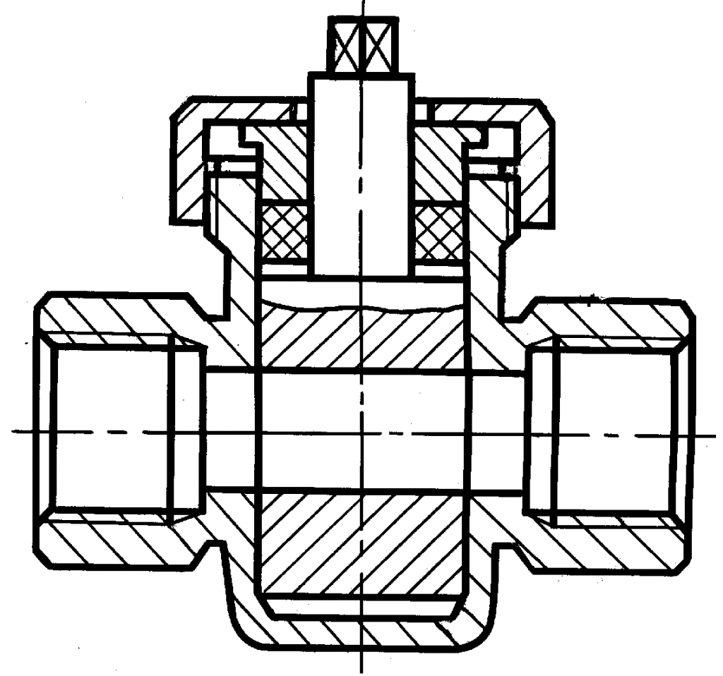 - Отверстие повёрнуто к стенке корпуса крана, и проход полностью перекрыт.