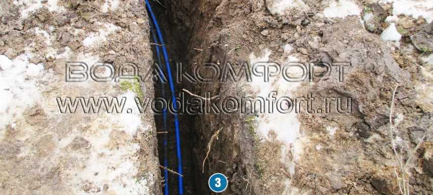 Водопроводная труба к потребителю в случае с кессоном и адаптером прокладывается на глубине не менее 1,6 метра, фото 3.