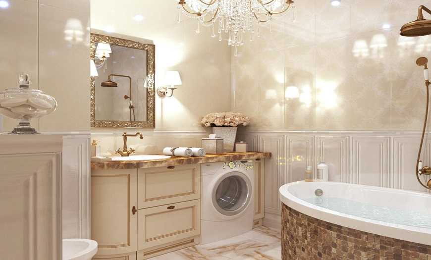 Часто по совместительству ванная комната служит еще и прачечной, поскольку в ней размещают стиральную машину. Нарушит ли она общий дизайн ванны, зависит от площади помещения и выбора места, куда хозяева ее поместят. Иногда все складывается вполне удачно даже тогда, когда стиральный агрегат остается на виду.