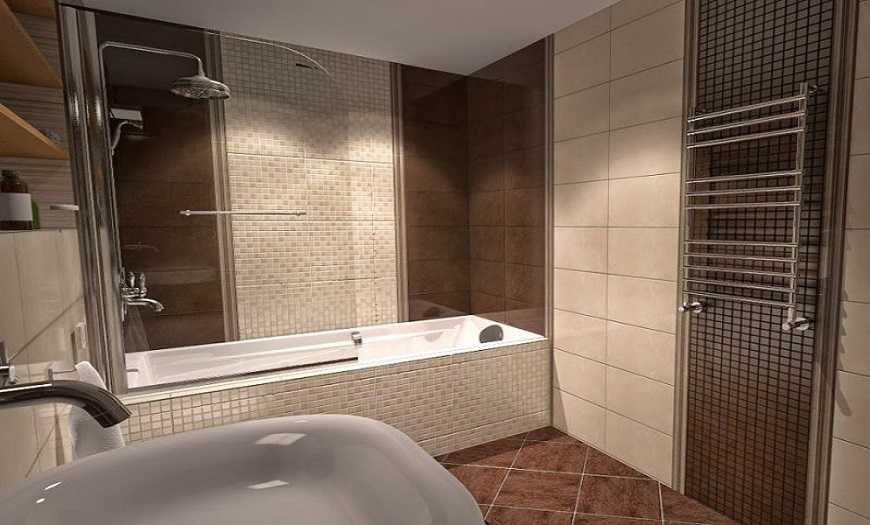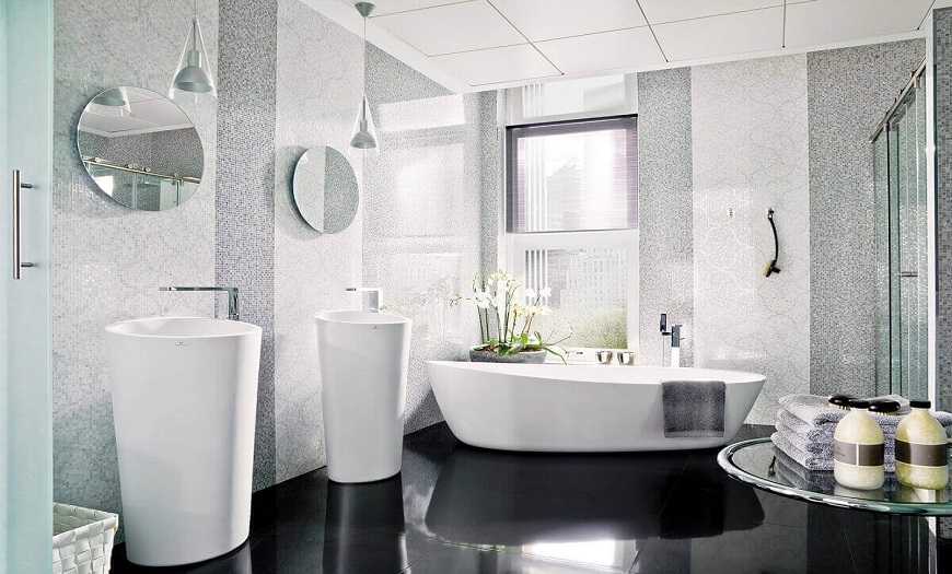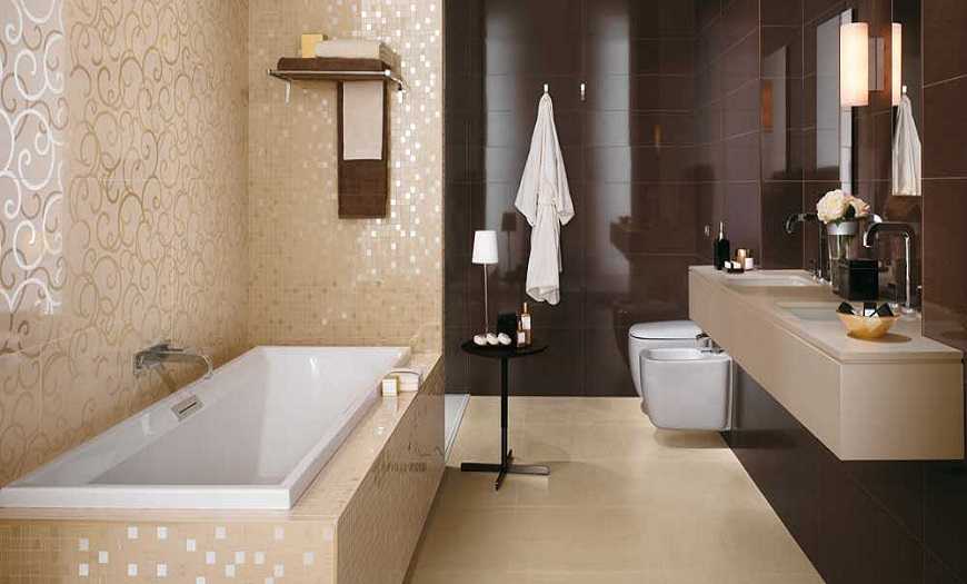 - чем меньше размеры ванной комнаты, тем меньшие габариты должны быть у каждой плиточки, то есть чем больше плиток – тем визуально шире кажется пространство;