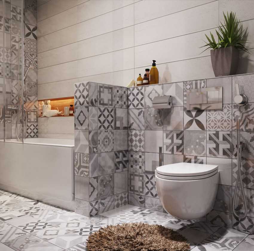 - не переборщите с контрастами: слишком пестрая плитка (особенно в случае с мозаикой) может сделать помещение зрительно тесным, создавая «эффект калейдоскопа»;
