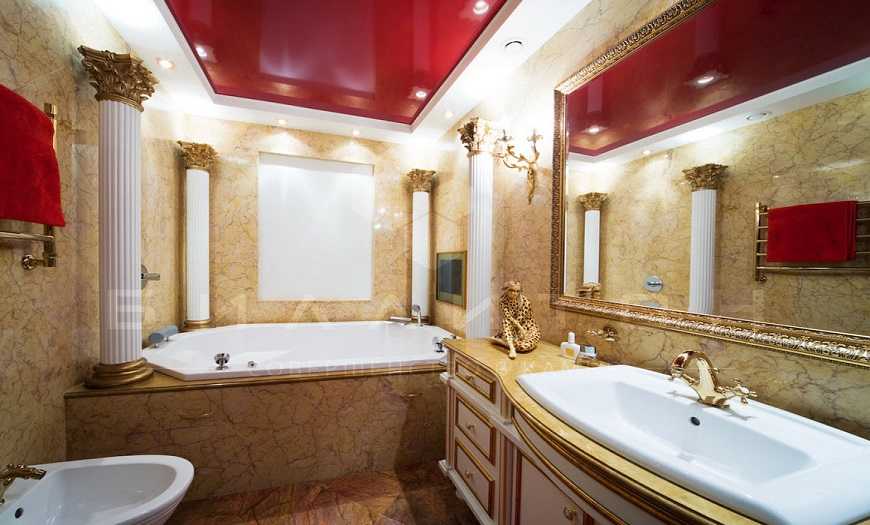 Эта палитра считается женской, особенно когда выбраны лиловые и пурпурные оттенки. А если включить в оформление розовые тона, то ванная будет напоминать помещение для юной принцессы.