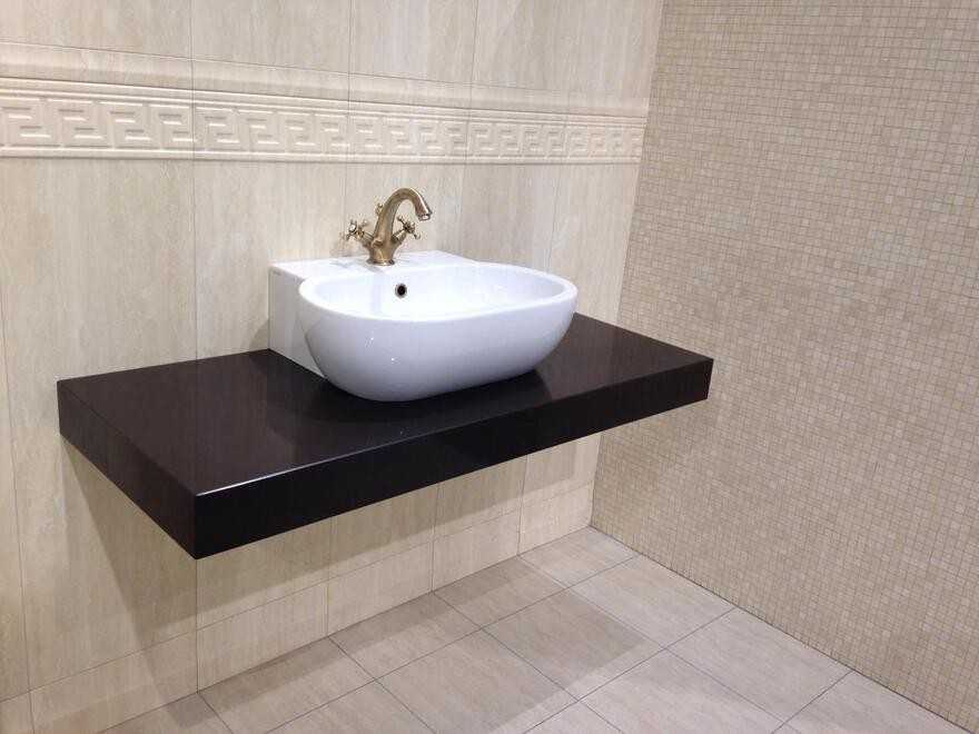 Установленная раковина на столешницу – это новое слово в обустройстве санузла. В этом случае изделие просто кладется на столешницу, причем ее роль может исполнять любая плоская поверхность. Естественно в продаже предлагается множество специальных столешниц, от обычных они отличаются тем, что в них есть углубления.