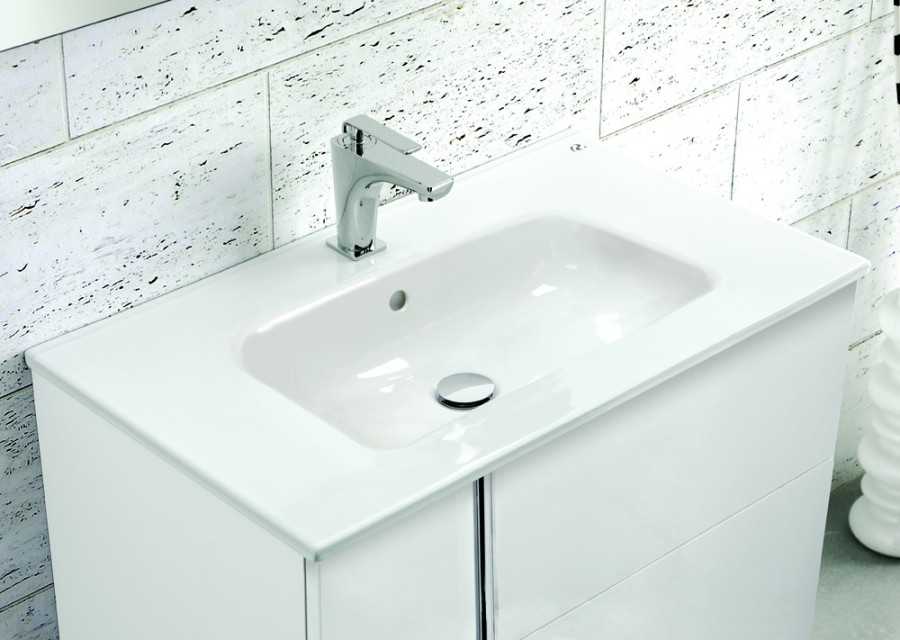 Встраиваемые изделия также можно устанавливать сверху на крышку стола, фиксируя бортиками по периметру основы, либо встраивая снизу в конструкцию. В санузлах, где отсутствует возможность поместить столешницу, имеющую стандартную ширину, удобнее применять полувстраиваемые модели.