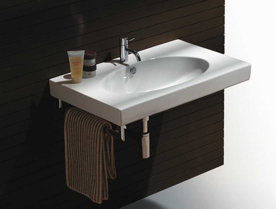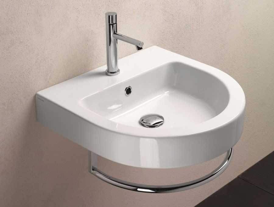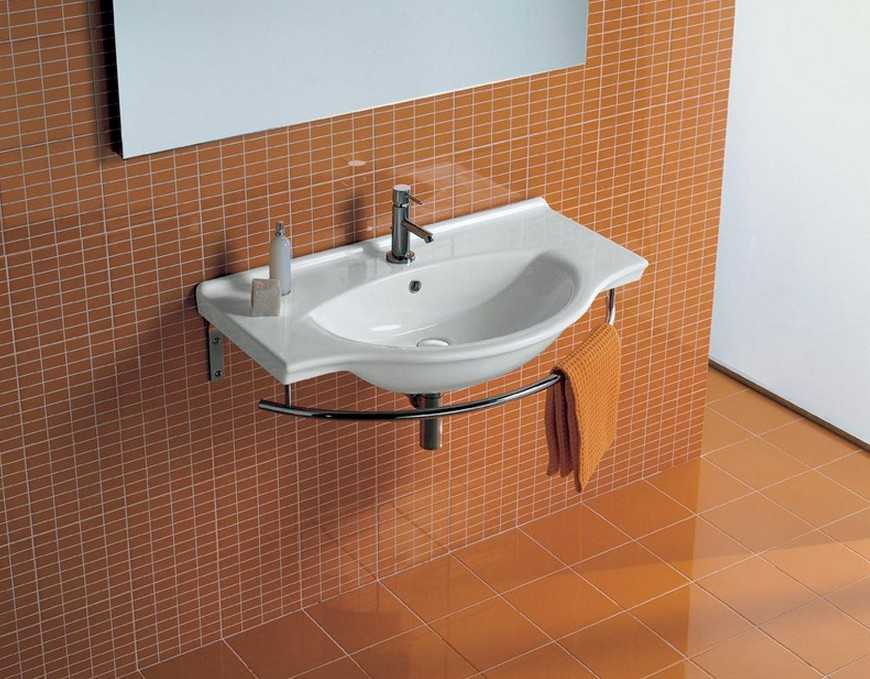 Некоторые модели оснащаются держателем для полотенец, который может крепиться как к нижней части раковины, так и к стене при помощи дюбелей и саморезов.
