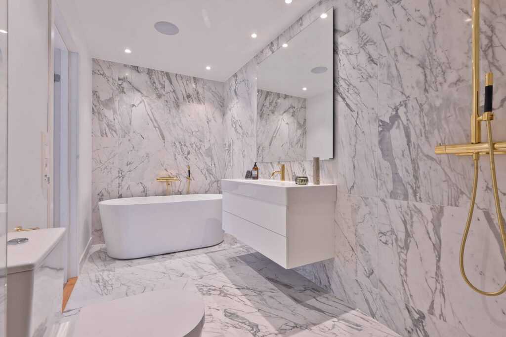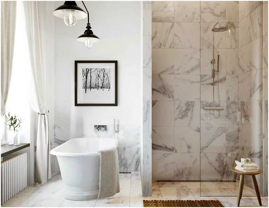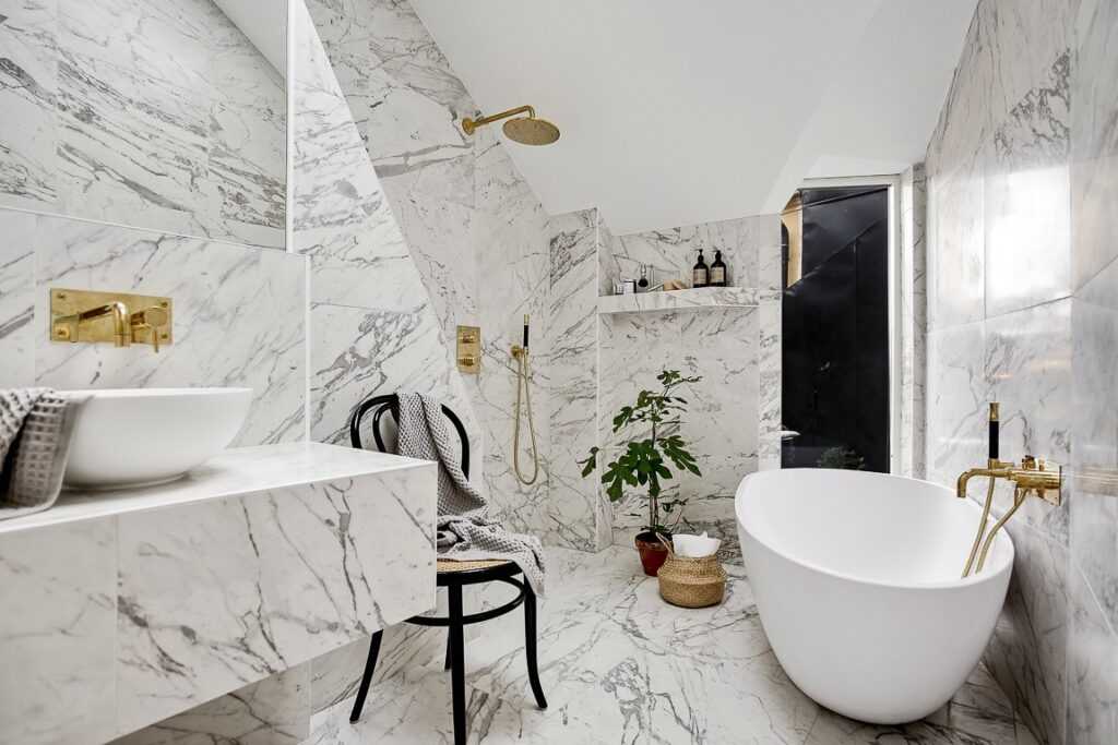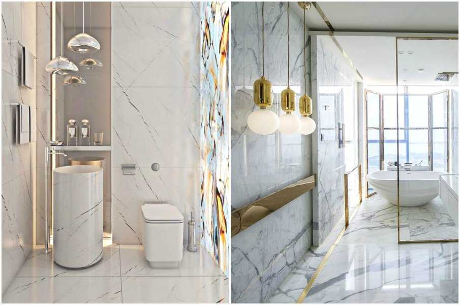Природный камень хорошо сочетается с разными видами материалов. Это предоставляет возможность реализовать различные творческие идеи, включать мраморную плитку в ванную, оформленную в классических и современных стилях.
