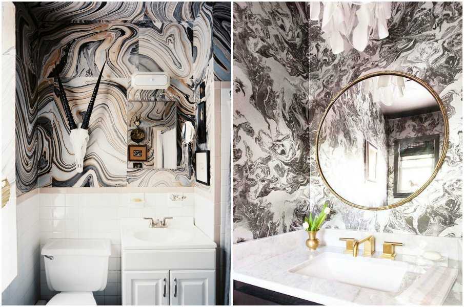 Комбинация светлого и тёмного мрамора в интерьере ванной комнаты