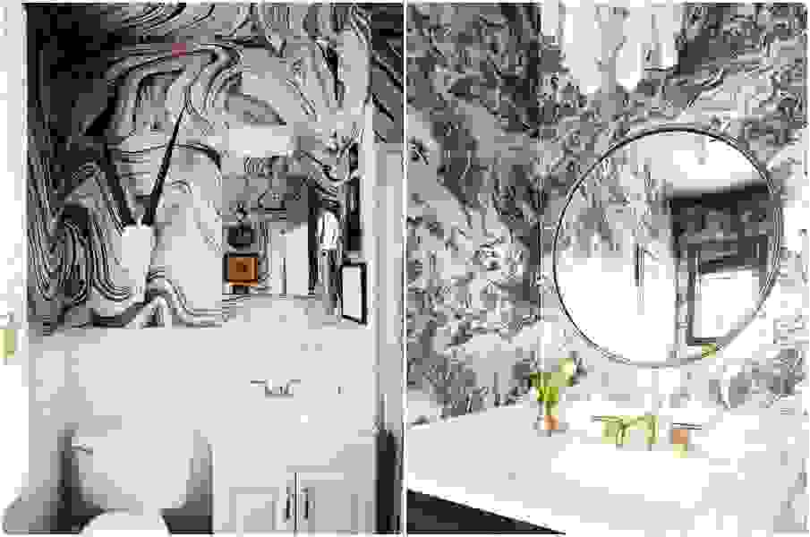 Эпатажный, но элегантный стиль ар-деко призван удивлять, поэтому не стоит ограничивать стандартной отделкой стен — можно изготовить оригинальный подиум или мебель по индивидуальному заказу. Здесь приветствуются плавность изгибов и криволинейность форм, поэтому мрамор с витиеватым рисунком придется как нельзя кстати.
