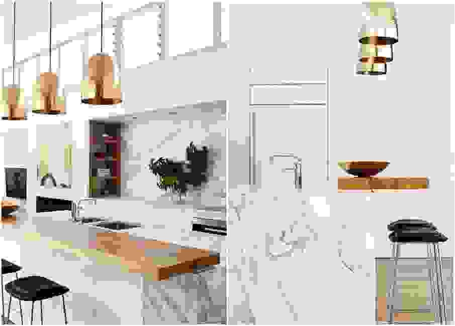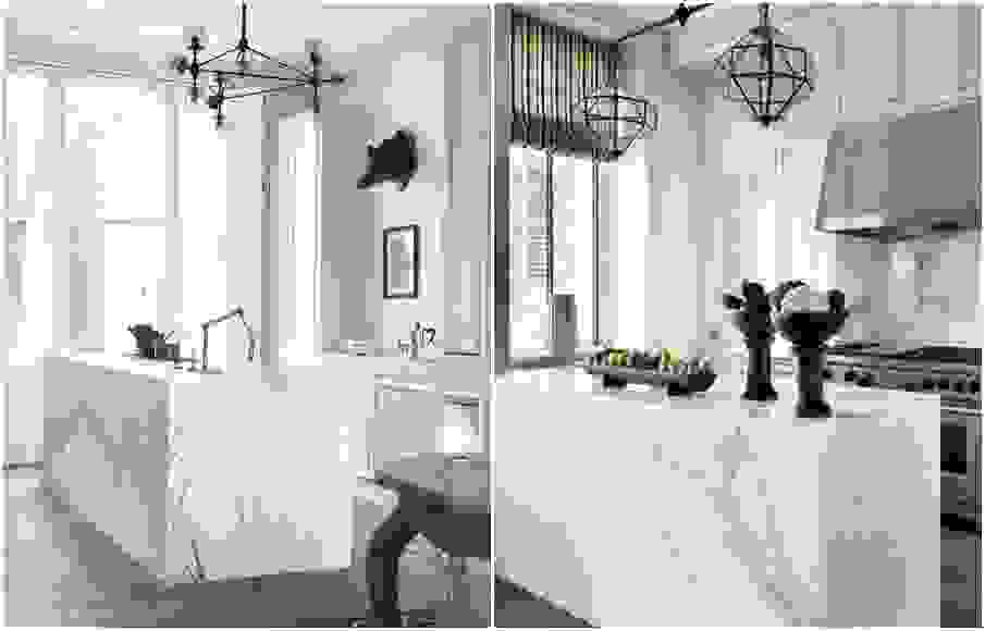 Мраморная столешница прекрасно дополняет аскетичный интерьер кухни