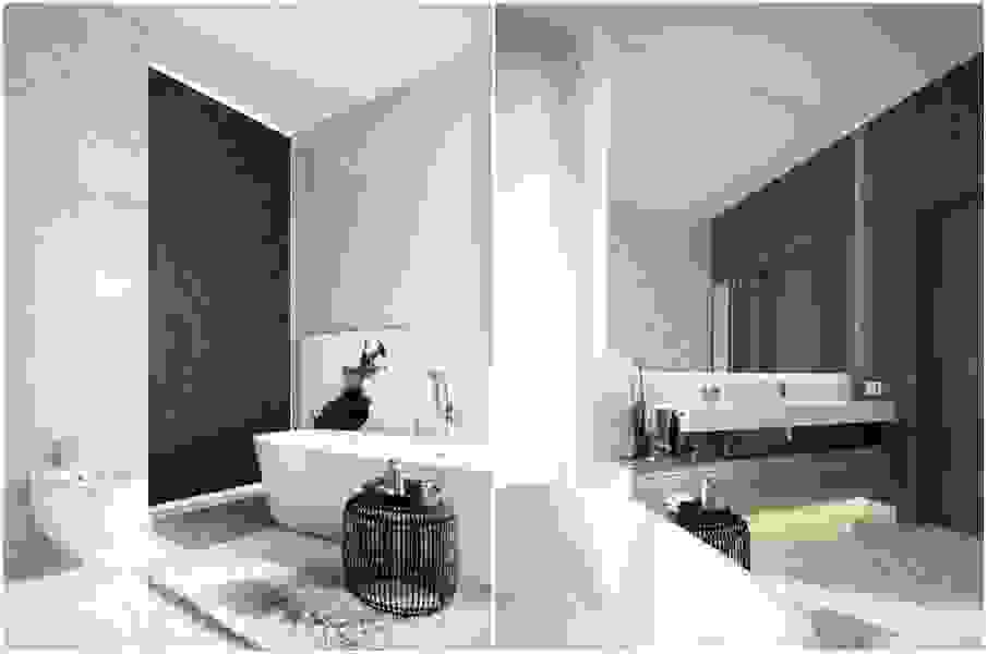 Для модерна характерна сдержанность и лаконичность. В оформлении ванной в таком стиле может использоваться мрамор, но он должен быть неярким. Лучше всего подойдет серый, белый и светло-коричневый. Здесь не будет лишних предметов, поэтому мраморная стена станет смысловым центром и главным украшением комнаты.