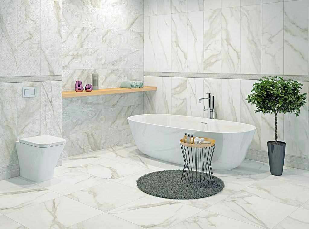 Плитка под мрамор для ванной комнаты бывает следующих типов: