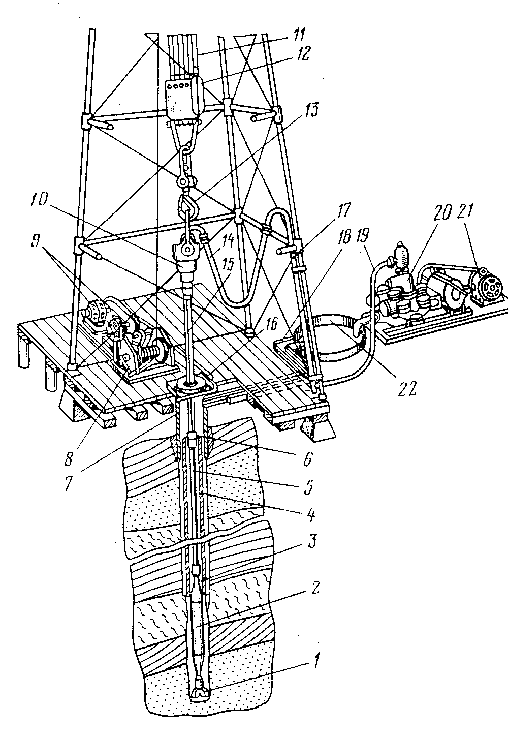 скважины в центре вышки. Ротор вращает