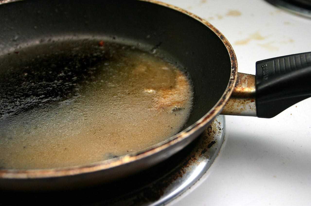 При контакте с холодной водой жиры быстро затвердевают и оседают на поверхности. Поэтому ни в коем случае не выливайте остатки масла после готовки в канализацию.