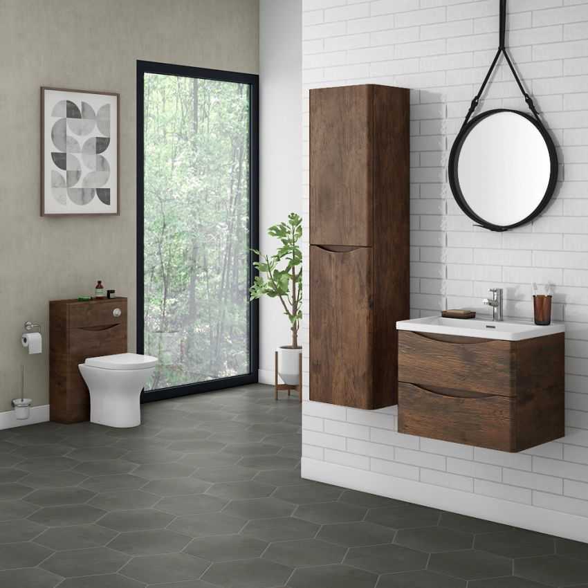 Привычная нам геометрия по-прежнему в тренде, однако если хотите действительно впечатлить кого-то новеньким ремонтом в ванной комнате, обязательно обратите внимание на шестиугольную плитку — вариант, который можно 100% назвать модным и очень актуальным для маленькой ванны. Судите сами по фото ниже