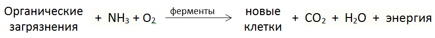 Аэробные бактерии, отвечающие за окисление органики, вырабатывают специальные вещества – ферменты, которые помогают окислить органику сточных вод. Часть ферментов выделяется клеткой бактерии наружу (экзоферменты), где они окисляют растворенные органические вещества до состояния, когда окисленное вещество сможет проникнуть в клетку бактерии. Вторая часть ферментов находится в самой клетке (эндоферменты) и доокисляет, то, что попало внутрь. Этот механизм можно сравнить с приемом пищи человека: сначала еда прожёвывается, измельчаясь, а затем уже подготовленная переваривается в желудке.