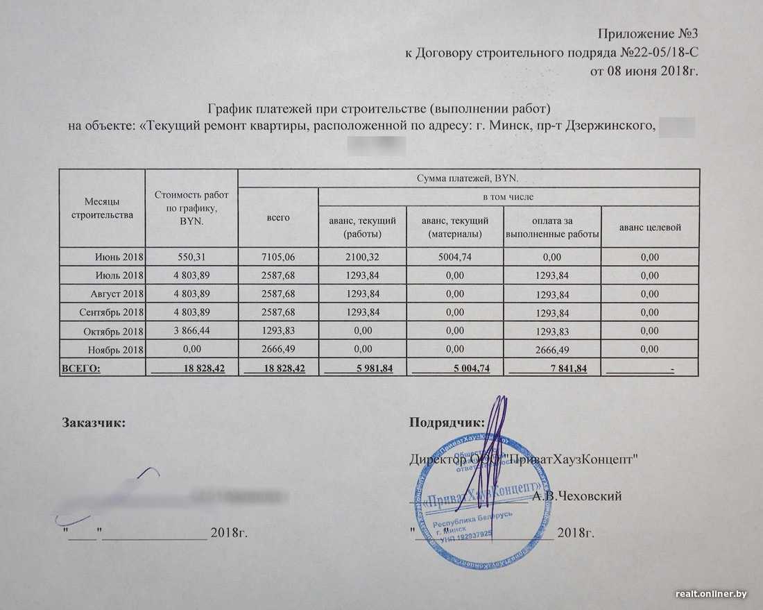 Стороны договорились, что за четыре месяца и почти 19 тыс. рублей в квартире минчанина будет красота. При этом ремонт обеих лоджий (за исключением утепления), разводка электрики и сантехники, отделка коридора декоративной штукатуркой оставались на совести Андрея, «ПриватХаузКонцепт» на это даже не претендовал.