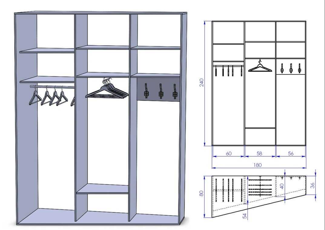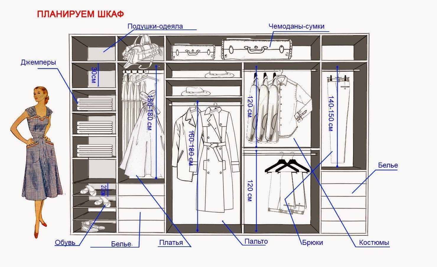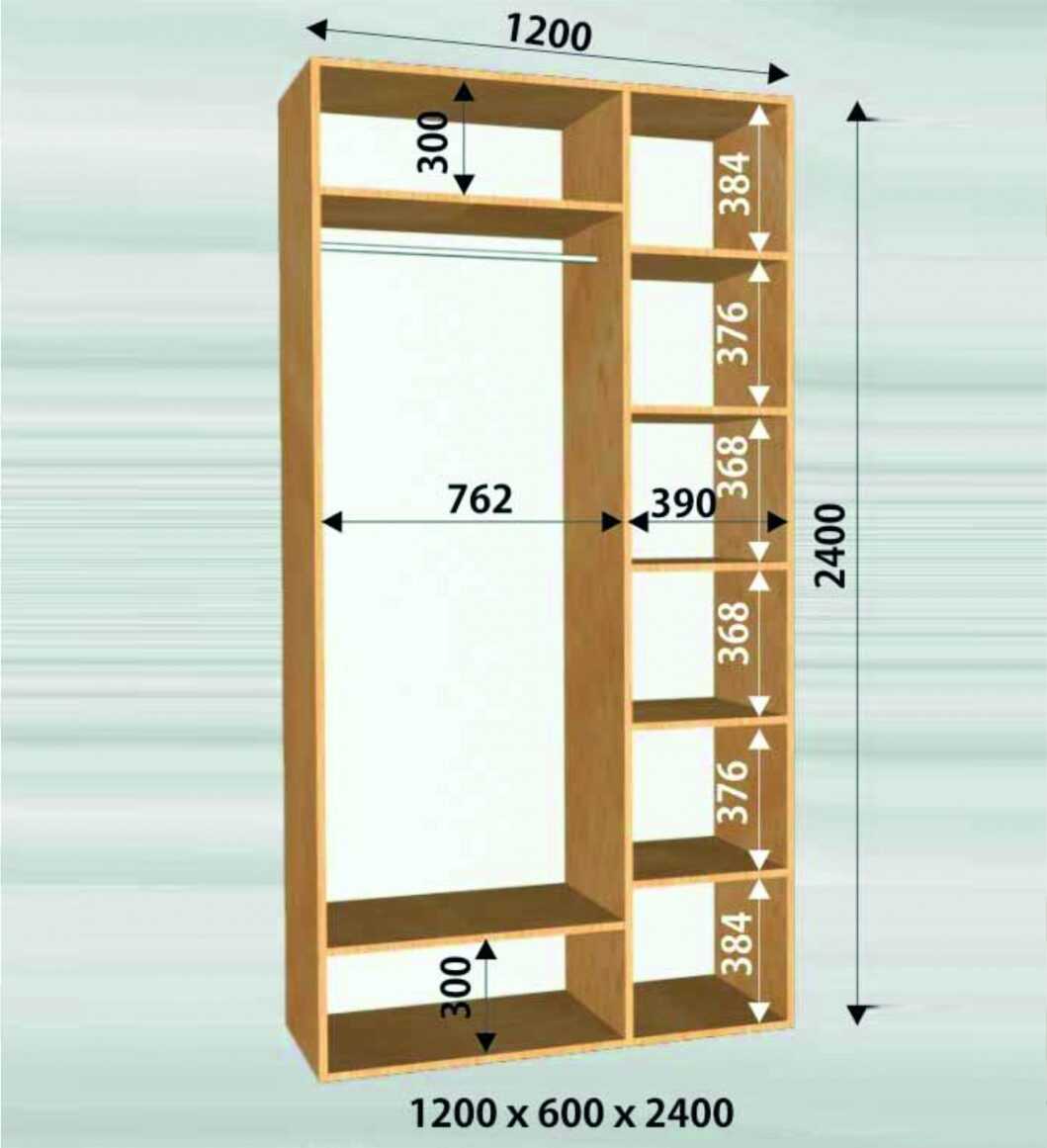 - полезную глубину полок, из которых 10 см уйдет на раздвижную систему дверей;