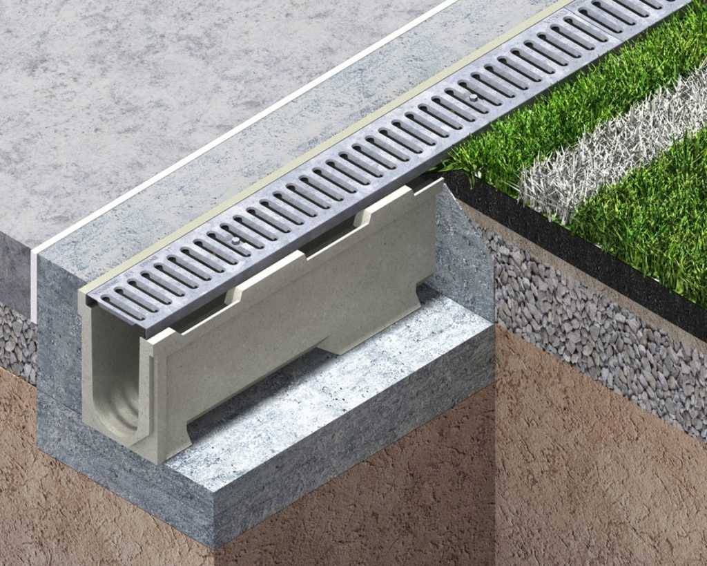 Линейный тип ливневки, являющийся сетью каналов, проложенных под землей или в незначительно заглубленных траншеях. Собирающие и перемещающие воду лотки, проложенные открытым способом, также оборудуются пескоуловителями и оснащаются решетками. Только решетки устанавливаются вдоль всей линии. В отличие от точечной схемы линейная канализация собирает воду не только с кровельных водостоков, но и с дорожек, с площадок, покрытых бетоном, вымощенных тротуарным кирпичом. Этот тип канализации «охватывает» и обрабатывает больше объектов.